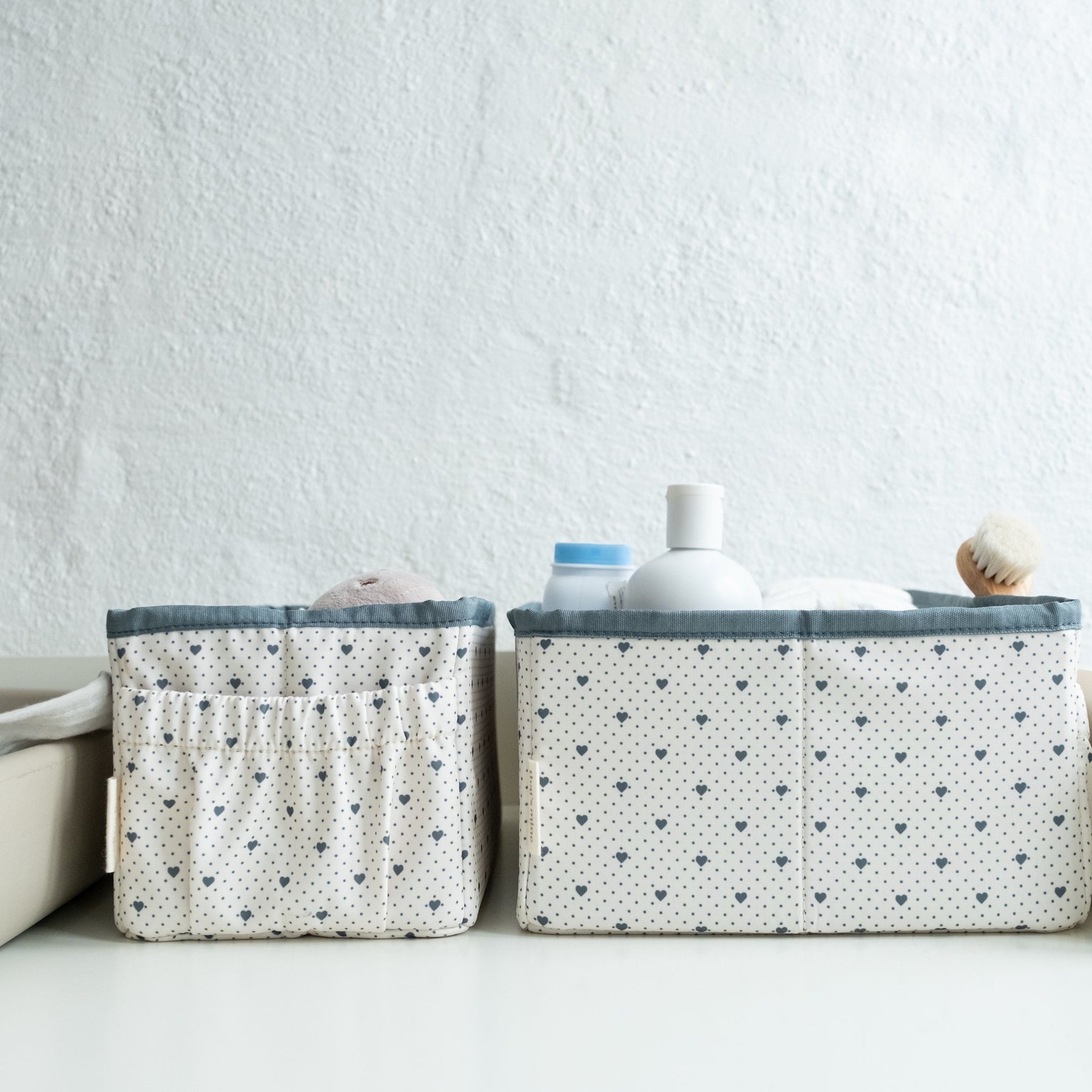 Lucy pusleopbevaring er en opbevaringskasse med et sødt print som er med til at organisere diverse ting man har brug for under pusletid. Kassen er perfekt til opbevaring af bleer, stofbleer og andre puslenødvendigher. Opbevaringskassen består af et stort aflangt rum. Opbevaringskassen har 3 praktiske lommer på siden. Når du ikke bruger kassen og vil spare plads, kan du åbne bunden og tage den hårde bund ud og folde den sammen.Vask: Tåler ikke maskinevask, tør blot af med en fugtig kludLængde: 32 cm / Bredde: 15 cm / Højde: 13 cm